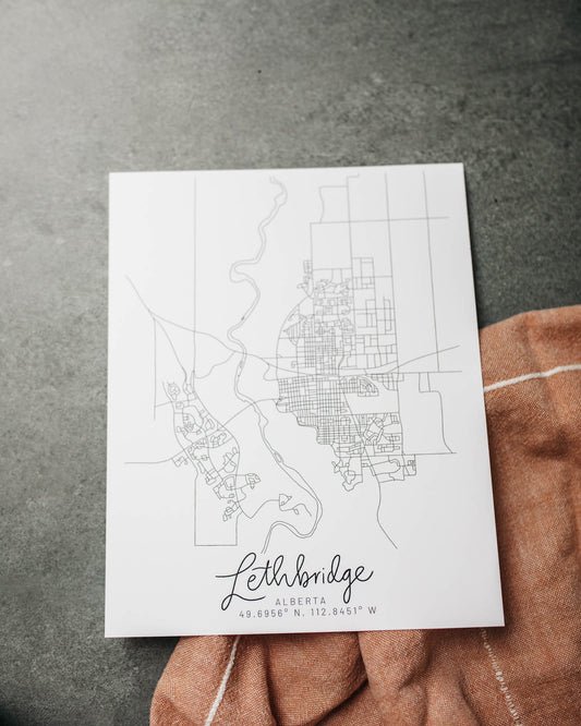 Lethbridge, Alberta Minimal Hand Drawn Map