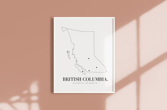 Personalized British Columbia Minimal Hand Drawn Map | Custom BC Map