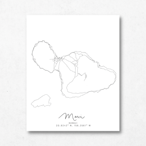 Maui, Hawaii Minimal Hand Drawn Map | USA Minimal Map